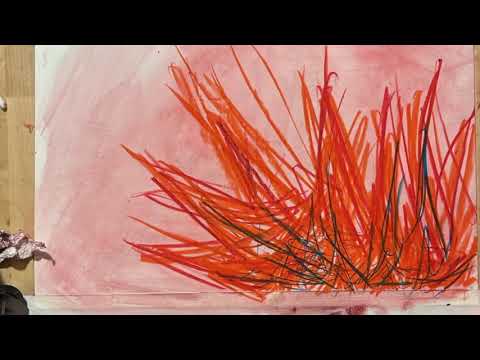 I started this project by having fun, drawing a bright red hot dog bouncing around the frame using Aquarelle Caran d'Ache crayons and water on Yupo paper. I wanted to keep the frame of my workspace around the animation, to drive home the fact that I'm drawing it and scrubbing at it in real time. The work is the process. I've always loved the work of William Kentridge and Matt Bollinger - both of whom do hand-drawn stop motion animations - and I think that the reason I respond to their work is that the hand is as much a part of the work as the objects/characters/images themselves.